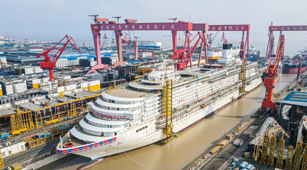 喜報!第二艘國產(chǎn)大型郵輪順利實現(xiàn)塢內(nèi)起??!