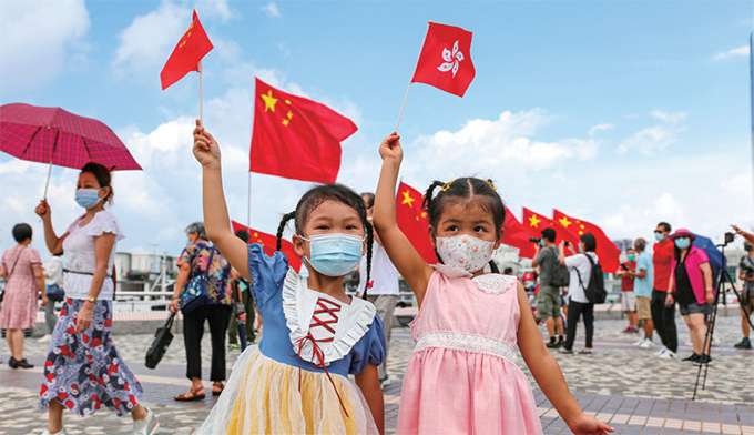 「賀建黨百年,慶香港回歸」。在香港,集團(tuán)制定專門方案,成立專門機(jī)構(gòu),組織開展香港政治形勢課程培訓(xùn)、專項(xiàng)工作大討論和主題黨日活動, 助力推動黨史學(xué)習(xí)教育在香港可見、可感。集團(tuán)組織小區(qū)、員工及香港青少年「尋訪抗戰(zhàn)足跡、聆聽歷史故事」,接受愛國主義教育。在7月1日舉行的升旗儀式上,護(hù)旗方隊(duì)首次采用中式步操進(jìn)場,引人注目。塞拉利昂下紅旗招展,尖沙咀一片紅,吸引許多市民打卡,與國旗合影。香江岸邊,市民揮舞著五星紅旗或紫荊花區(qū)旗,臉上洋溢著喜悅與自豪。東方之珠以她特有的浪漫方式融入祖國,處處閃耀「中國紅」。