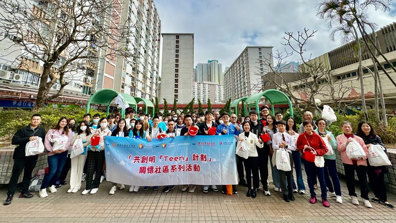 2月3日下午,集團組織百余名學員及友師參加香港特區(qū)政府第二期“共創(chuàng)明‘Teen’計劃”開展社區(qū)探訪活動,在集團區(qū)議員符碧珍服務(wù)的觀塘北社區(qū)探訪長者和殘弱人士,幫助其清潔家庭衛(wèi)生并派發(fā)了福袋。