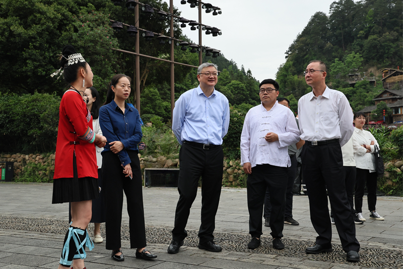 在黎平期間,王海民一行沿著總書記的考察路線,深入肇興侗寨調(diào)研侗族文化展示中心,侗鄉(xiāng)織、染、繡特色產(chǎn)業(yè)基地,集團幫扶項目侗族大歌研學(xué)基地,詳細了解民族文化傳承、鄉(xiāng)村旅游產(chǎn)業(yè)帶動和群眾受益增收等情況,并代表集團領(lǐng)導(dǎo)班子看望慰問掛職干部。
