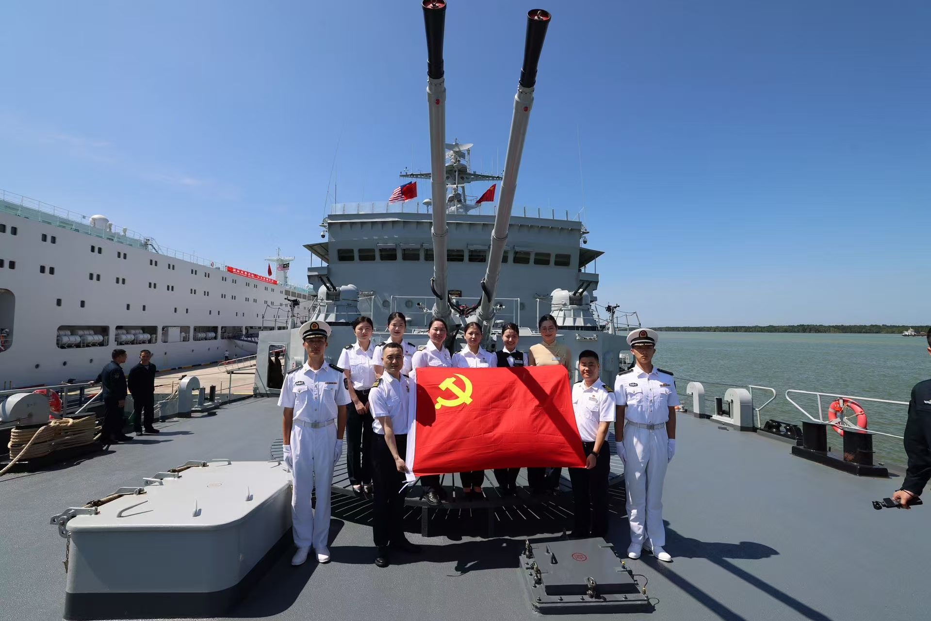 活動(dòng)中,黨員們集中觀看81艦專題紀(jì)錄片,了解其歷史與使命,并圍繞操舵作業(yè)流程、航海應(yīng)急處置等專業(yè)議題展開深入研討。隨后參觀了989艦的先進(jìn)裝備配置,并在主炮前合影留念。此次活動(dòng)是航海領(lǐng)域軍民融合的又一實(shí)踐,強(qiáng)化了“鼓浪嶼”號黨員骨干的國防意識與責(zé)任擔(dān)當(dāng),也堅(jiān)定了其推動(dòng)中國郵輪品牌走向世界的信心與決心。