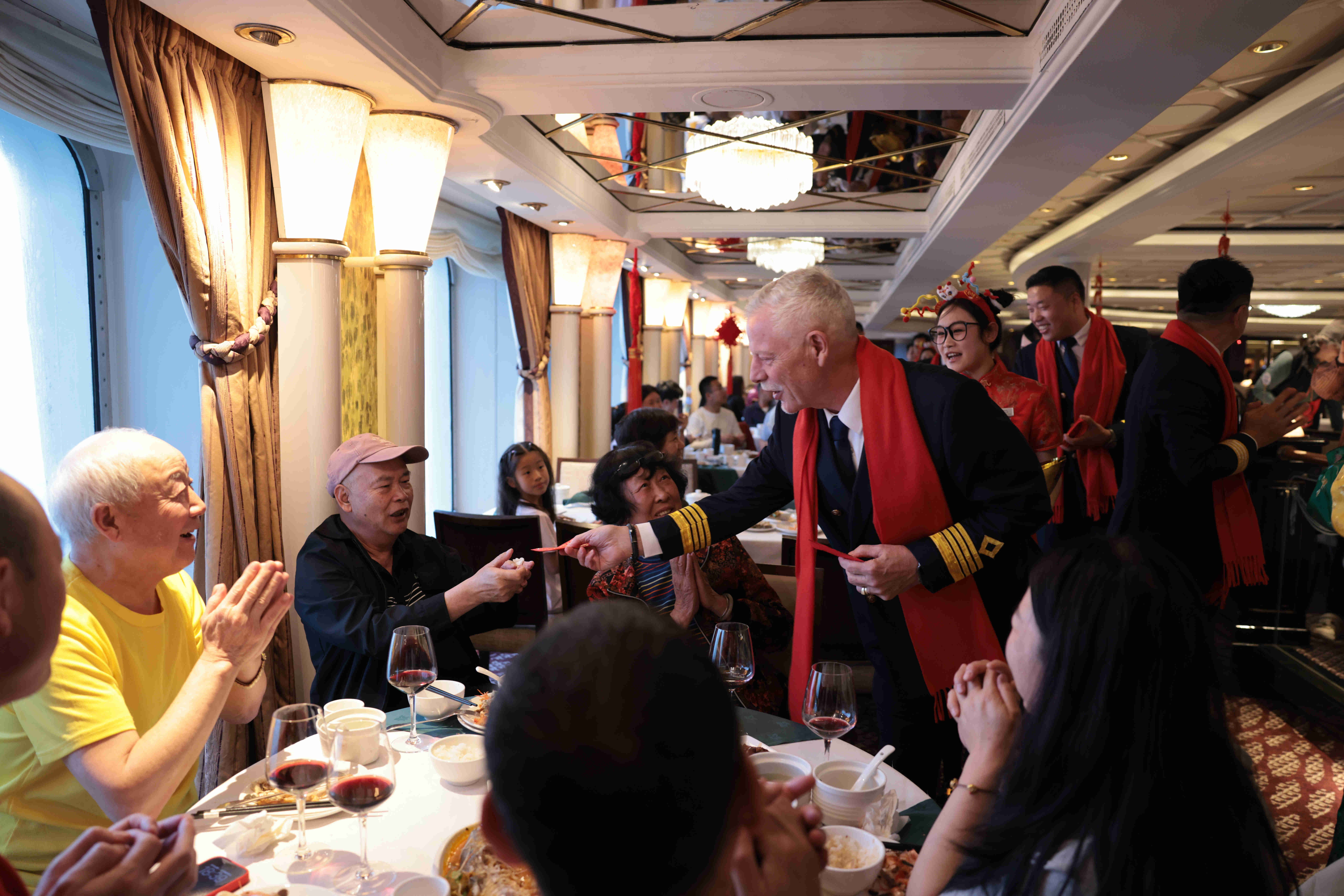華夏郵輪旗下“愛(ài)達(dá)?魔都”號(hào)、“愛(ài)達(dá)?地中?!碧?hào)和“鼓浪嶼”號(hào)以花燈、春聯(lián)、窗花等傳統(tǒng)民俗裝飾對(duì)全船進(jìn)行布置,營(yíng)造出紅火熱鬧的節(jié)日氛圍,并圍繞非遺主題推出獨(dú)具特色的新春活動(dòng)。