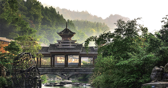 侗寨風(fēng)雨橋是他們的典型建筑特色