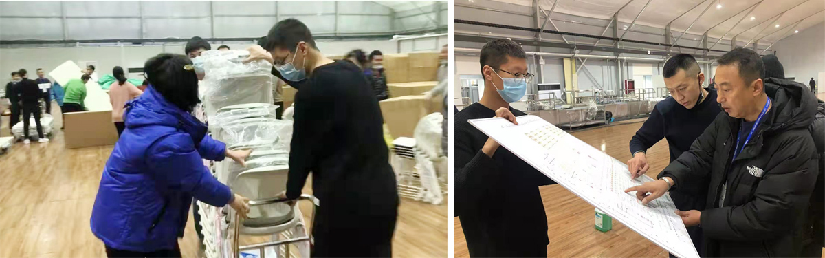 旭東來到冬奧村,正式加入餐飲組時,他形容道:“剛開始什么都沒有?!蹦菚r的運動員餐廳只有兩個棚子,大家很著急。在大家共同的努力下,餐廳的狀況得到了改觀,為了盡可能節(jié)約開支,無論領(lǐng)導(dǎo)還是大廚,餐飲組全員當(dāng)起了“搬運工”,廚房用具到貨卸貨、一張張桌椅板凳,旭東說,“都是我們一點點搬運的,也是我們一項項落位拼好的?!?/p>