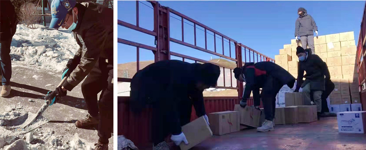 崇禮的冬天,比北京和山西老家都來的早、來的突然。一夜之間天寒地凍,一夜之間雪沒膝蓋。大雪后,大家一起清掃餐廳門口的積雪,開辟出道路,幾位年輕人邊掃雪邊哼唱著曲子,旭東感覺一下子回到了學(xué)校。有一天,在大貨車上卸貨時,旭東的臉愣是被寒風(fēng)吹破?!耙驗槭悄欠N十幾個輪子的貨車,必須要站上去卸貨,我和幾個同事在車上卸了一天的貨,然后我的臉就被吹傷了,溫度一高就疼?!彼貞浀溃骸按蠹叶己荜P(guān)心我,董湛哥給我找了嬰兒油,還給了我面膜讓我保護(hù)好自己?!倍炜梢愿洌袗劬筒慌?,心也會更暖。