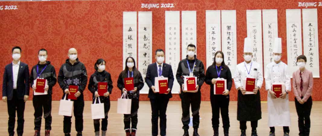 2021年12月31日晚,中旅冬奧會(huì)服務(wù)團(tuán)隊(duì)在張家口冬奧村運(yùn)動(dòng)員餐廳舉辦元旦聯(lián)歡活動(dòng)。被譽(yù)為“亞洲第一大中央廚房”的運(yùn)動(dòng)員餐廳賽時(shí)可容納366人同時(shí)就餐,為確保員工安全,會(huì)場(chǎng)按照防疫要求精心布置準(zhǔn)備,僅安排部分人員現(xiàn)場(chǎng)參與活動(dòng),仍有百余名同事堅(jiān)守在值班現(xiàn)場(chǎng)。冬奧組委奧運(yùn)村部副部長(zhǎng)、張家口村運(yùn)行團(tuán)隊(duì)主任賈凱,中國(guó)旅游集團(tuán)紀(jì)委副書記、監(jiān)察部副部長(zhǎng)(主持工作)邊艷及冬奧會(huì)項(xiàng)目前方指揮部相關(guān)領(lǐng)導(dǎo)參與活動(dòng)。