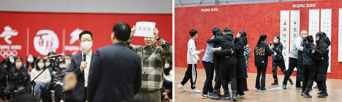 活動(dòng)中有互動(dòng)游戲,猜字謎與冬奧會(huì)巧妙鏈接起來(lái)。從運(yùn)動(dòng)項(xiàng)目猜到住宿餐飲服務(wù)工具,生動(dòng)形象地向大家詮釋,運(yùn)動(dòng)員締造的每一份精彩,都有在冬奧村精心服務(wù)、傾情奉獻(xiàn)的每位工作者的一份功勞。