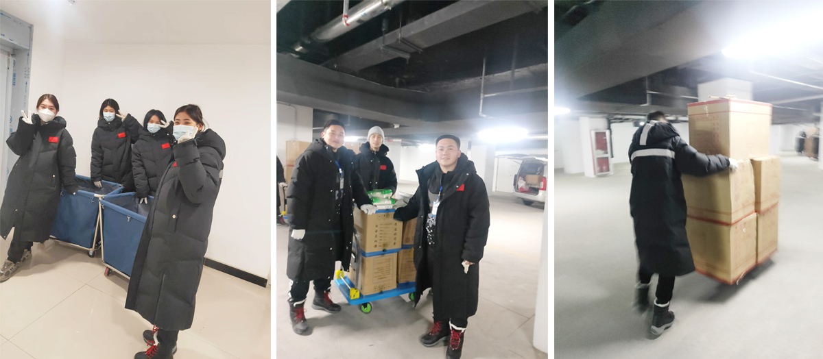 為了12月21、22日全要素壓力測試,我們3號院要準(zhǔn)備出178間可用房、215個床位。我?guī)е?名實(shí)習(xí)生,主要負(fù)責(zé)床上棉織品移入。棉織品開始都集中放在倉庫的,零下十幾度的溫度,我們用小拖車來來回回、反反復(fù)復(fù)的運(yùn)送。