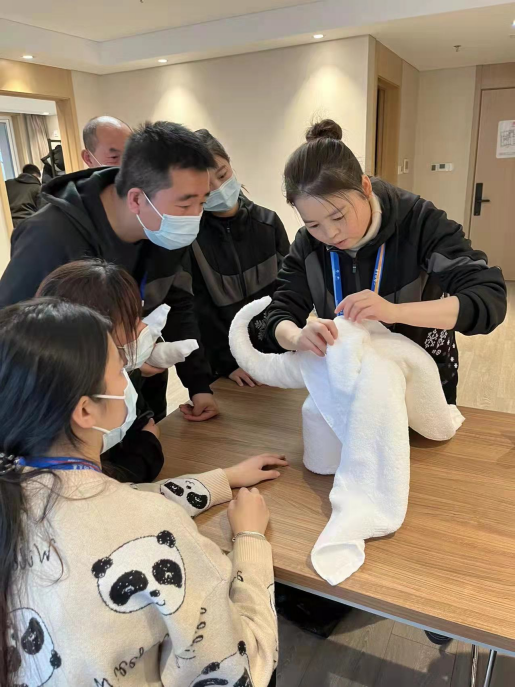 三地海泉灣積極響應(yīng),在嚴(yán)密組織、嚴(yán)肅紀(jì)律的前提下,第一時(shí)間進(jìn)行廣泛內(nèi)部動(dòng)員,共遴選出14名專業(yè)強(qiáng)、素質(zhì)佳、表現(xiàn)優(yōu)的核心骨干,按要求分批抵達(dá)張家口冬奧村。目前,在中旅酒店協(xié)調(diào)部署下,14名援奧骨干已分別就任公共區(qū)域主管、保潔主管、健身中心主管、庫(kù)房及客房部樓層主管、中西餐廚師等崗位,承擔(dān)起服務(wù)培訓(xùn)和團(tuán)隊(duì)管理工作。援奧骨干盡職盡責(zé),為北京冬奧會(huì)的順利舉辦提供專業(yè)性服務(wù),獲得了冬奧村主管機(jī)構(gòu)的一致好評(píng)。咸陽(yáng)海泉灣派出的骨干董婭紅個(gè)人被評(píng)為“服務(wù)標(biāo)兵”,她所負(fù)責(zé)的公寓樓5號(hào)院班組榮獲“先進(jìn)班組”稱號(hào)。
