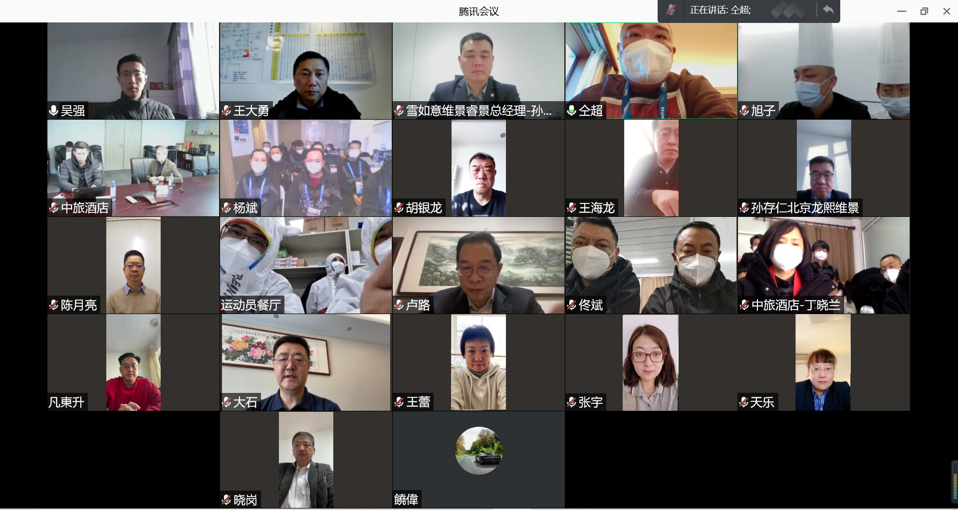 與會的五十多名駐冬奧村、涉奧酒店和企業(yè)的員工代表紛紛表示,感謝集團領導的慰問和關懷,將不辜負集團的期望,以更高的服務標準、更嚴的防疫措施和更佳的工作狀態(tài),全力以赴完成冬奧服務保障工作,向集團交上一份滿意答卷。