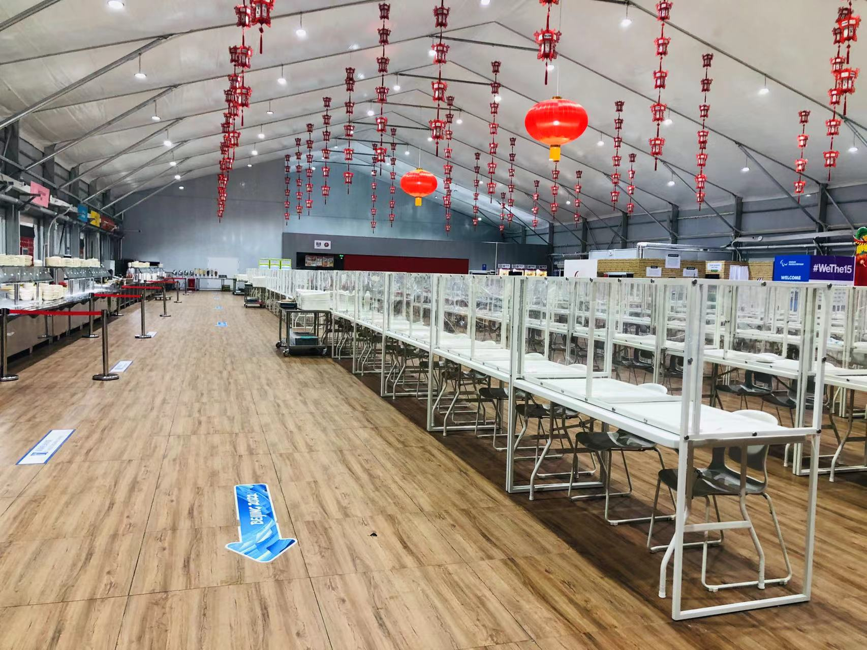中旅酒店各團(tuán)隊(duì)通過模擬殘疾人運(yùn)動(dòng)員的住宿、就餐、健身等日常村內(nèi)生活場(chǎng)景,帶領(lǐng)服務(wù)崗位熟悉冬殘奧村無障礙環(huán)境,結(jié)合特殊服務(wù)需求進(jìn)一步充實(shí)工作計(jì)劃和做好資源準(zhǔn)備。在增添無障礙貼心服務(wù)方面,于公寓樓和居民服務(wù)中心入口增設(shè)防滑地墊,調(diào)整運(yùn)動(dòng)員餐廳布局,加大餐桌間距,座位數(shù)從378減到268,增加輪椅存放區(qū)和48個(gè)輪椅就餐專座,調(diào)整菜品標(biāo)簽、飲料的陳列方式和高度,增設(shè)8套盲文菜單和3個(gè)殘疾人衛(wèi)生間,增配輔助取餐崗位工作人員,增設(shè)2個(gè)攪拌機(jī)點(diǎn)位為有需要的運(yùn)動(dòng)員提供流食等。另外,借鑒冬奧會(huì)開閉幕式經(jīng)驗(yàn),為轉(zhuǎn)場(chǎng)去北京參加開幕式的457名運(yùn)動(dòng)員、隨隊(duì)官員和工作人員提供離抵村貼心服務(wù),增加住宿和餐飲夜宵的夜間值班人員,確保開幕式參與人員的順利轉(zhuǎn)場(chǎng)和溫馨返村。