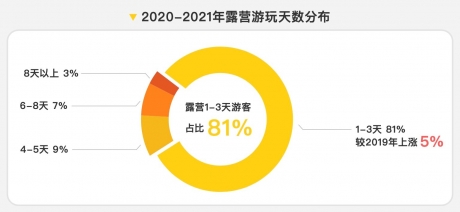 放松休閑的屬性決定了以周末出行為主的“微度假”是露營最主要的場景。數(shù)據(jù)顯示,81%的游客選擇用1-3天來體驗露營,親近自然、恢復(fù)元氣。露營地的選擇也不僅局限于所在城市,很多消費者喜歡到周邊城市體驗更新鮮的環(huán)境。比如,廣州和深圳的消費者,會選擇自駕1-2小時即達的惠州、佛山、中山露營。