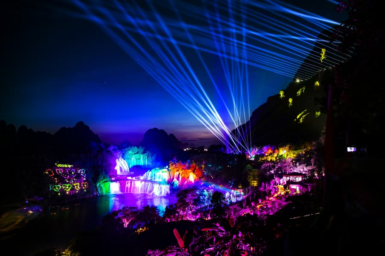 景區(qū)傾力打造亞洲首個(gè)沉浸式跨國(guó)夜游互動(dòng)體驗(yàn)項(xiàng)目--“奇妙?夜德天”,游客可從高空棧道俯瞰德天瀑布夜景,欣賞璀璨燈光下瀑布的磅礴氣勢(shì),也能近距離感受燈光與水幕的完美交融,獲得身臨其境的體驗(yàn),實(shí)現(xiàn)“一夜德天,一瀑兩國(guó)”的沉浸式體驗(yàn)。